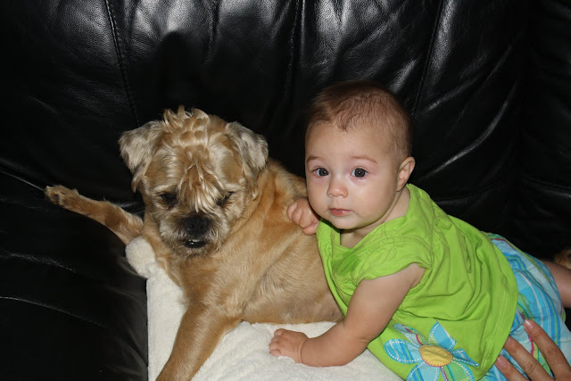 Gizmo was my first "baby" after Terry and I got married. We had gotten into an argument one night a couple of months after we were married, and Terry left to cool down. He NEVER leaves when we argue so I thought it was a little weird, but we had only been married a few months so I didn't put too much thought into it. Well, he came back a couple of hours later with a 3 lb bug eyed, squish faced puppy! Gizmo stole my heart the moment I saw him and has been rotten ever since. He was a TERRIBLE puppy, and any normal person would have gotten rid of him. However, he is so funny and super emotional. He listens to everything you say and puts himself in time-out in the bathtub when he has done something wrong. I don't think there is or ever will be another dog like him. You can only imagine how much more I adore him after seeing him with Madeline. He refers to her as the hairless dog and hasn't quite figured her out yet. She loves him. Sometimes she will just look at him and crack up laughing. Yesterday we snapped these pics of the two of them!