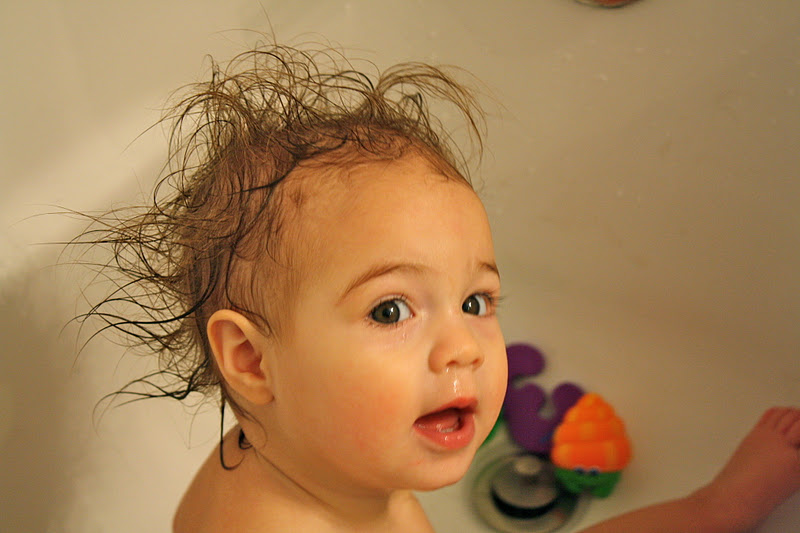 Your love for bath time hasn't waned either. I love your hair in this picture! |